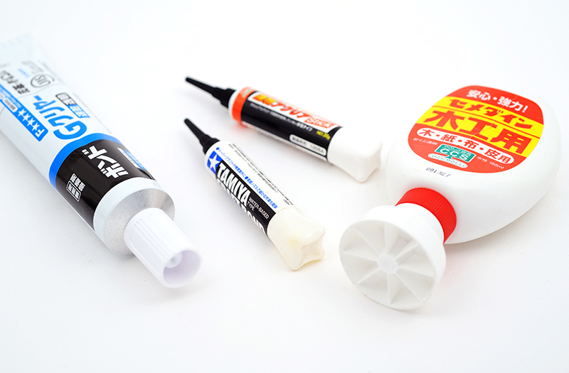 切り出したパーツを組み合わせ、接合するために接着剤が必要になります。接着剤として事務用の「スティックのり」は身近にあると思います。ですが、スティックのりは粘着力が低く、時間の経過により剥がれることがあります。したがって、ペーパークラフトでは避けるべきです。